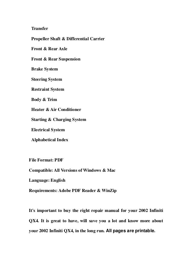 [17+] 2001 Infiniti Qx4 Service Manual, 2009 Infiniti Qx56 Service Repair Manual Download